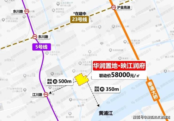 「华润置地·映江润府」距离5号线江川路地铁站直线距离仅约500米,距离黄浦江直线距离仅约350米,通勤优势+滨水社区,几乎没有对手!