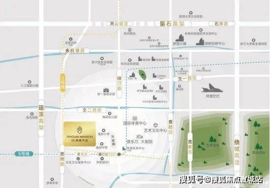 在医疗资源方面,浙一余杭院区一期已建成,二期扩建中,为社区居民提供了便捷的医疗服务。此外,项目周边交通便捷,绿汀路TOD、地铁5、16、3号线三站换乘,直线距离约600米;绿汀路、文二西路、文一西路、运溪高架等交通干道交汇,形成了黄金十字中轴的立体交通网络。