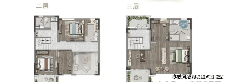 三层可以说是更为震撼的,这一层是专属于主人的天地。 整体宽敞明亮,步入式衣帽间、中央圆形浴缸布置如酒店般舒适精致,独立起居室给生活倍添仪式感。