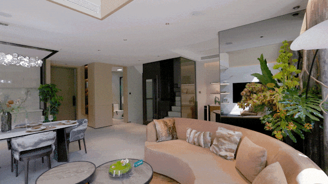 对于联排来说,地下室是充满惊喜的自由空间。 这次我们看到的样板间的层高达到了约5.6米,您可以在此设置游戏区、健身区和酒吧区等等。天井墙面及楼梯下的绿植景观将自然气息引入室内。