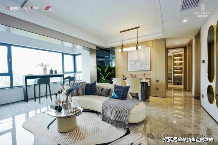 约105㎡ 的横厅户型则由柏悦酒店设计师打造,被称为“社交型横厅”。通过电动雾化玻璃,客厅可秒变50㎡的聚会空间或独立书房,灵活适应不同生活场景。
