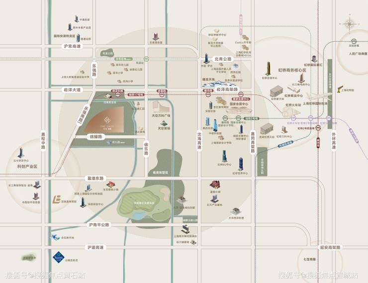 地铁:直线距离约100米就是地铁17号线徐泾北城站,4站虹桥火车站、5站虹桥机场,通过无缝换乘2号线及10号线,可到达中山公园、静安寺、陆家嘴、新天地、淮海路商圈等,这也是被称为上海”黄金线”和“繁华线”的两条线,未来还有在13号线延伸段和25号线(机场联络线)两大轨交助攻(规划中轨道线路),给出行提供极大的便捷通达性。