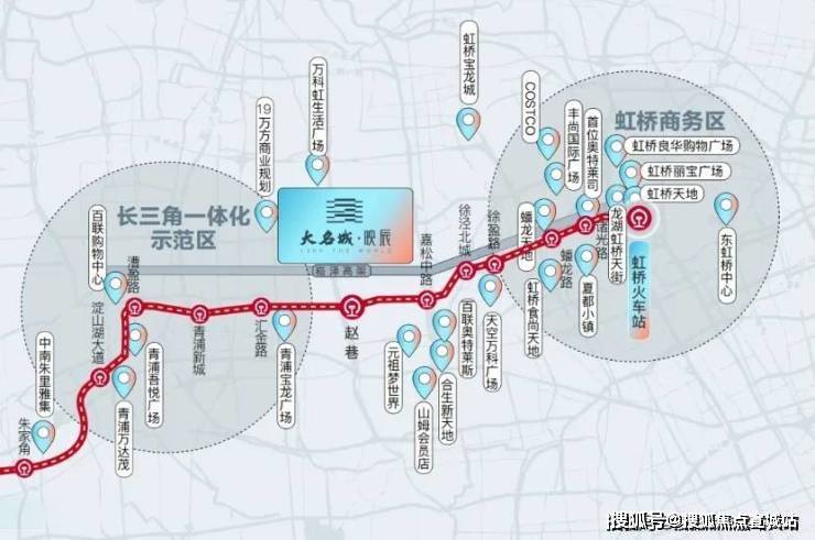 交通配套方面:大名城映辰距离17号线赵巷站约2.3公里,6站直达虹桥商务区,无缝衔接2号线、10号线,去上海传统市区上班也非常方便。另外,项目未来衔接示范区线赵重公路站直线1km,步行约1.5km的距离。