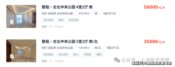 从网上挂牌价格看,古北的大户型房源月租金基本都在35000-55000之间,项目一路之隔的【古北中央公园】,挂牌价格在13-14w左右,161平米的三房,月租金3.8万,可以说投资回报率相当高,而且租客多为驻沪领馆外事人员、外企高管、国际学校陪读家长等,圈层较高且稳定。