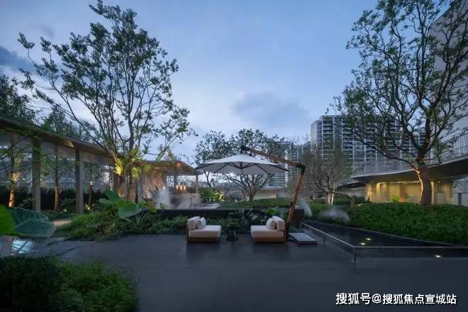 园林景观方面,精心雕琢的社区园林亦是加分项。以“与自然毗邻而居”的理念,将繁盛的绿意与玉湖的生态自然作为基底,打造“一轴双园八组团”的布局,景与景之间形成呼应,层层递进,一步一景,可谓是美感十足。