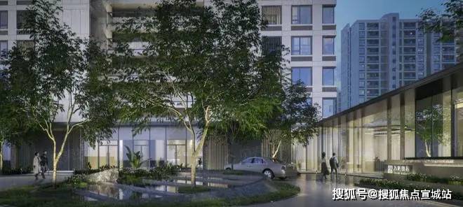 ➤ 落客庭院,进入迎宾门廊便是落客庭院,定制的整石雕刻而成的石台上镶嵌着金色的项目logo,特选的从生乌桕赫然挺立,在静静等候业主的到来;