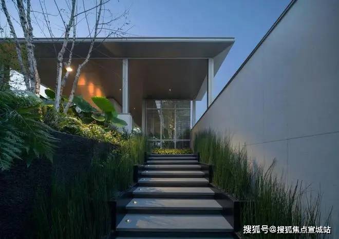 ➤ 街角花园,景墙的转折与高绿篱的错落,自然的形成了两处街角空间,种植池的围合与场地的抬升,使得空间更加静谧;