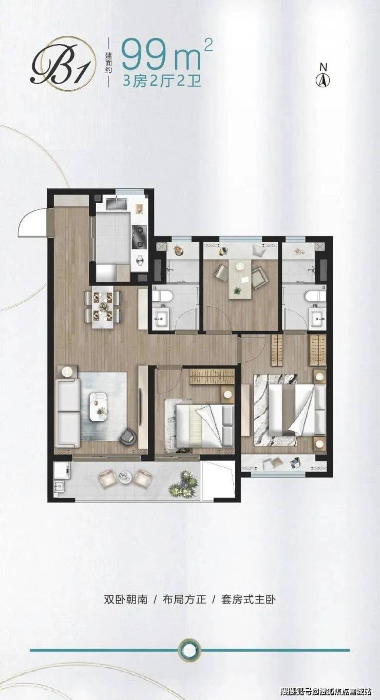 建面约89㎡做3房,功能性上就占尽先机,没想到项目还有1.5卫配置,主卧升级套房,真正实现一步到位!
