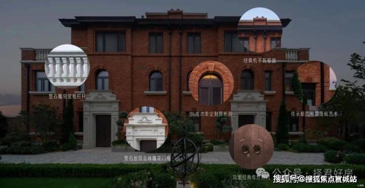 同款砖艺与屋面瓦材,随处可见天然石材整石雕刻工艺,新一代玖里系水岸风貌作品