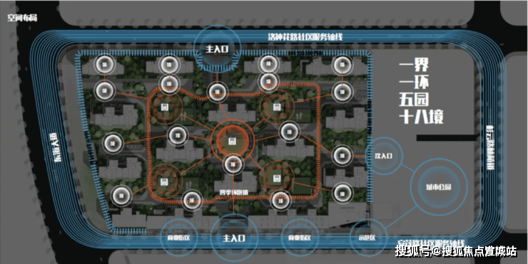 当然,上实城开也并没有辜负这个地段天赋,为了更好的与这自然生态相结合,在社区内打造了一界、一环、五园、十八境的景观。