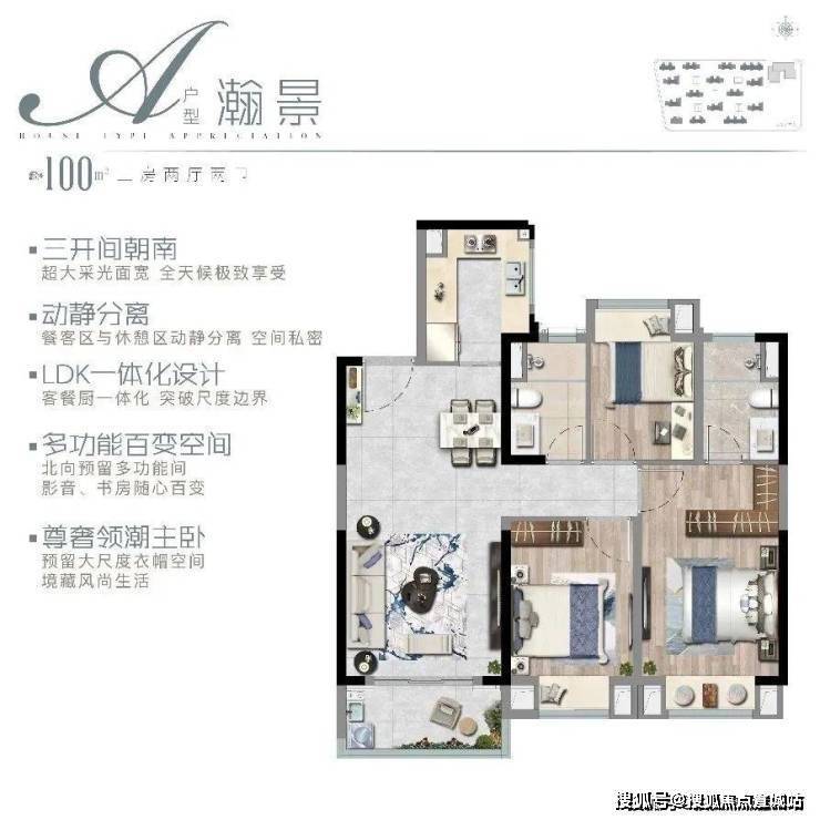 项目约100㎡3房2卫的户型把实用性做到了极致,总价虽低,但能满足业主从二人世界到二胎生活的全生命周期需求。