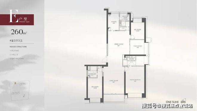 观家新房注意到,苏河湾1号原名安康苑推出的为靠后排的1号楼:此次的户型和上一期保持一致,依旧是140-170平三房、200-260平四房