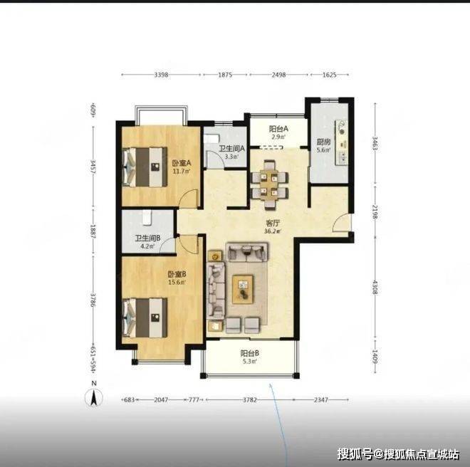 小区于2004年12月竣工,住宅楼采用南北通透板式设计,主力户型为两房格局。部分房源为108平南北通景观两房,客厅面宽达4米,南北双阳台,主卧约15平方,次卧约12平方。小区楼间距开阔,南面有河道,视野无遮挡。