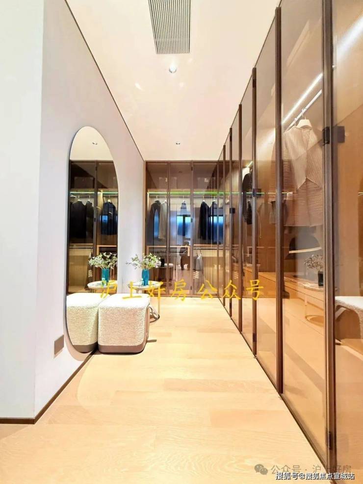 弧形元素缦云上海样板间里随处可见柔和的圆弧修饰,特别是柜体、墙体包边的圆弧转角,在进出各个空间时,减少磕碰的风险,对于有孩子和老人的家庭来说,是非常实用的友好设计。