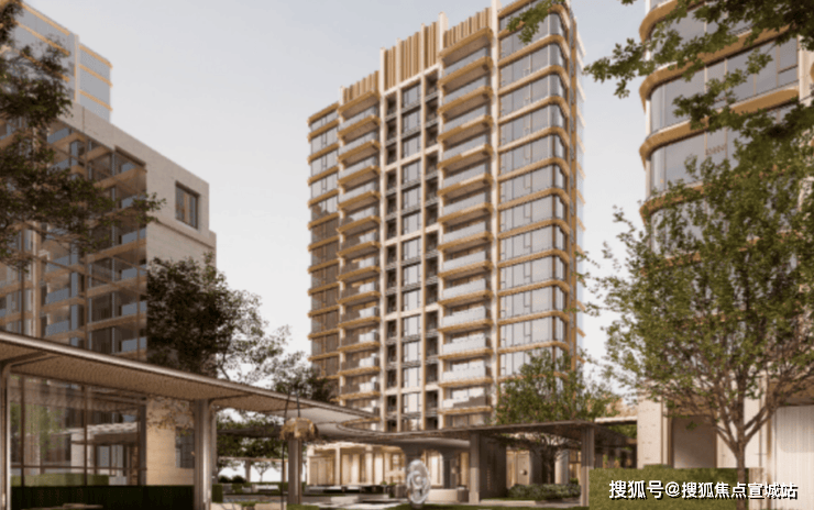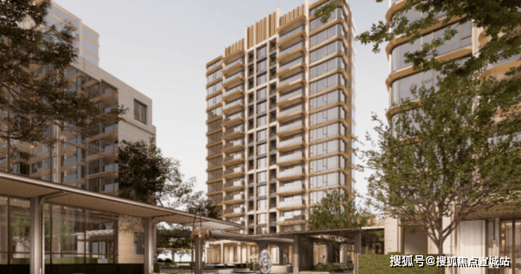 建筑以 暖色为基调,香槟金为点缀,全幅玻璃幕墙搭配澄澈镜幕弧形立面,以柔美、流动的姿态赋新高端人居美学,成为激发情感联结、承载生活温度的精神栖息地。