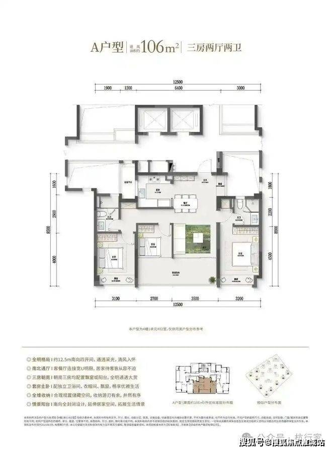 户型面积:涵盖106/109/128/139/162/164㎡,其中106㎡为四开间朝南设计,南向采光面达12.5米;109㎡边厅户型面宽6米,支持阳台封闭69。