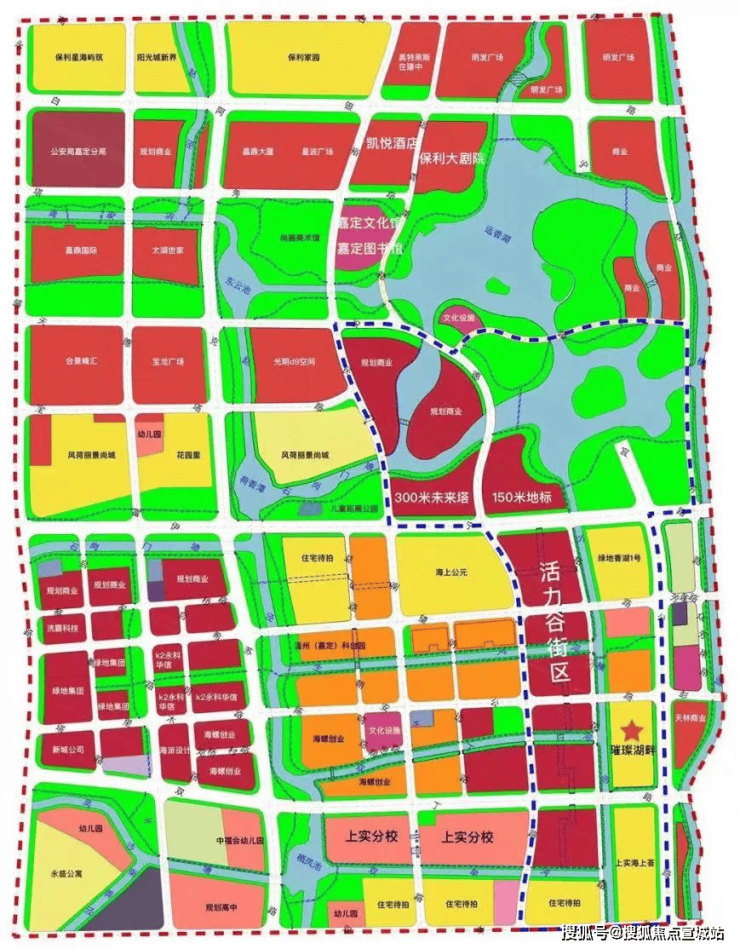 全力打造远香文化源、嘉宝智慧湾、西门历史文化街区,成为科技创新高地、智慧交通高地、融合发展高地、人文教化高地和具有较强辐射带动作用的新城样板。而远香湖中央活动区是整个嘉定新城的门面和“城市会客厅”。