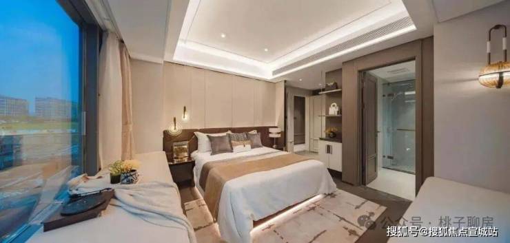 比起旧规产品,这间主卧套房,给足了主人居住的尊贵感与舒适感,270°无柱环幕飘窗,打开瞰景的广角视野,抬头星河璀璨,俯瞰风光旖旎。