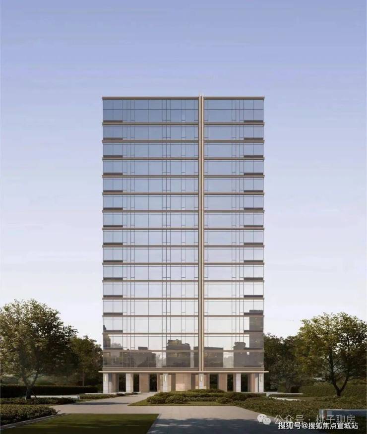 首层全石材干挂、配套用房造石英石,通过材质过渡构建建筑层次感;
