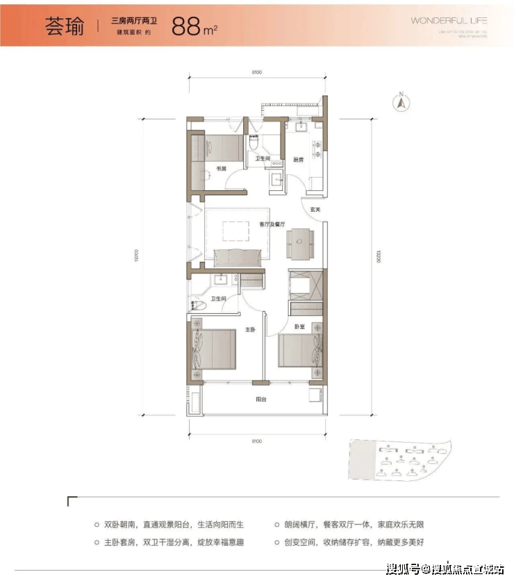 对标前滩太古里打造;同尺寸罕见双阳台双卫户型