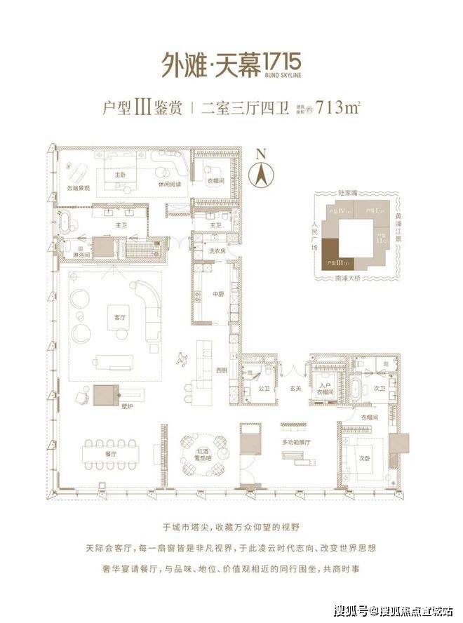 黄浦江滚滚东流,延续东方明珠的城市命脉;建筑烙印历史留痕,映射中国百余年金融、商业发展的缩影.情景间,品质自见;云端境,拥瞰黄浦……