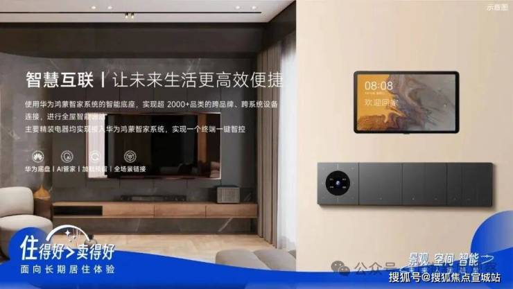 智慧互联:使用华为鸿蒙智家系统的智能底盘,实现超2000+品类的跨品牌、跨系统设备连接,进行全屋智能调动