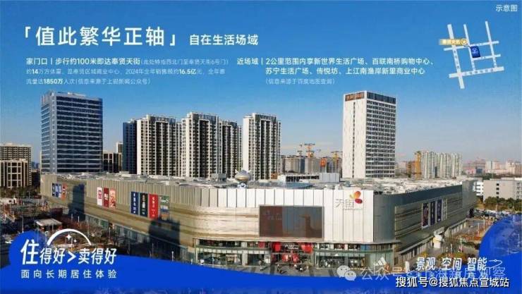 繁华商业自在生活场;家门口|一路之隔即达约14万方奉贤天街;近场域|约2公里范围内享新世界生活广场、百联南桥购物中心、苏宁生活广场、传悦坊、上江南渔岸新里商业中心