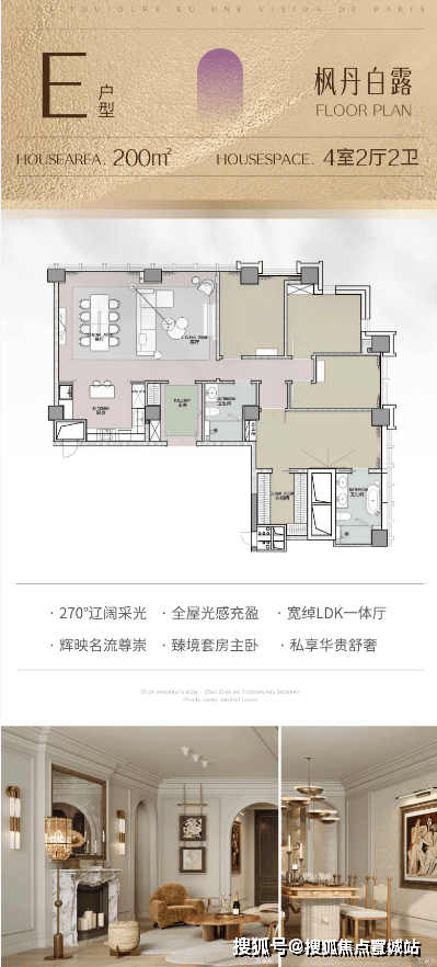 户型特色:以杜乐丽花园、香榭丽舍等法式主题打造全明通透格局,户户通燃气,满足家庭多元需求。