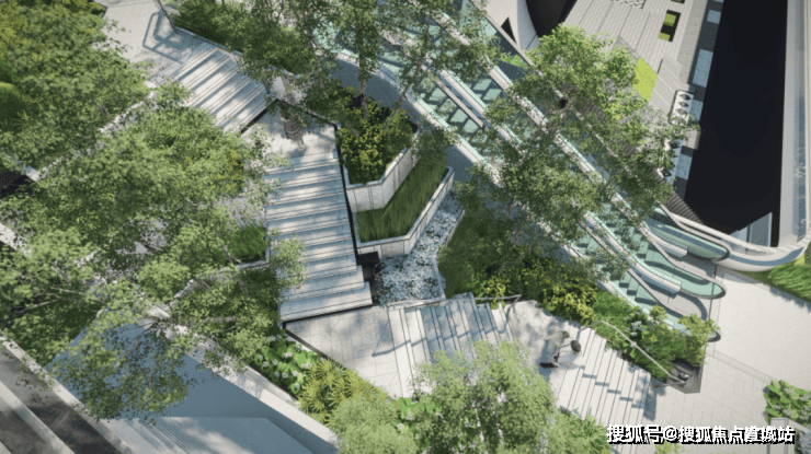 值得一提,项目高线公园打造“三大花园·六大游园”体系,提供丰富的体验场景,而在楼王东侧就是三大花园的其中之一,也是艺术感最强的一个花园,将结合艺术装置和台阶,为业主提供舒适闲坐、眺望树冠景观的空中露台。