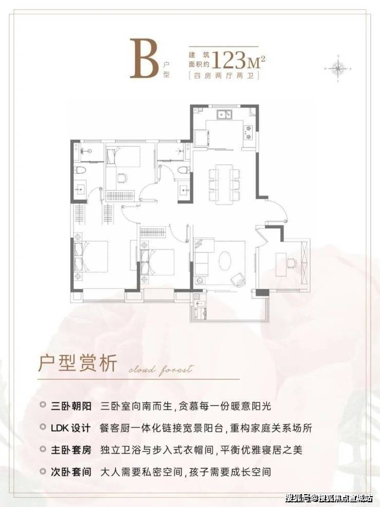 B户型建面约125㎡4房