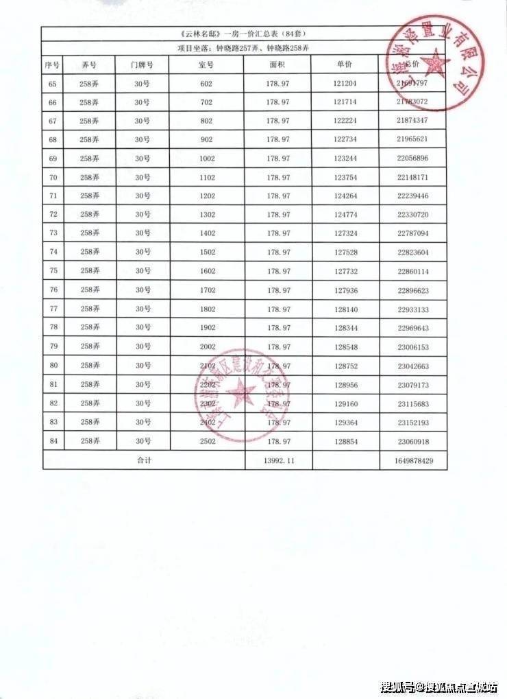 前期「一房一价表发布」