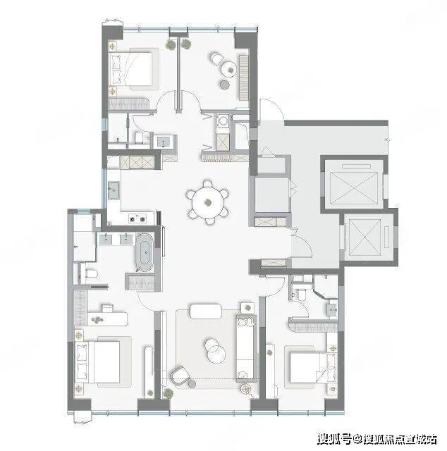 回归终改客户和资产配置客户的生活场景,项目在私密性和社交属性作出了重要表达,从细节着手革新产品设计标准,归家动线上打造出艺术地库光厅、一梯一户格局、隐奢会所、多场景架空层等人性化空间。
