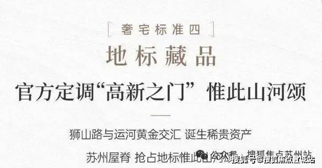 【项目核心价值点】狮山路核心CBD·最极致资源配套主城稀缺土地·终极置业地段运河文脉传承·绝版沿线住宅隐贵定制豪宅·极致稀缺平墅传奇综合地标·纵享国际生活国际巅峰大宅·纯粹公建立面豪宅龙湖品牌·深耕苏州11载国际一线臻装·隐奢细节雕琢亿级隐奢会所·康莱德行政酒廊钻石龙湖物业·康莱德增值服务✅龙湖·山河颂售楼处电话:400-8862-334✅︎✅︎✅✅龙湖·山河颂营销中心热线400-8862-334(官方预约看房热线)