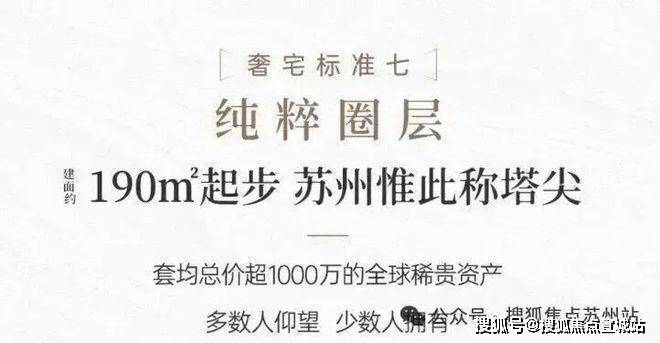 苏州唯一在售封面门户地标!苏州唯一一线靠古运河的高端全景住宅!苏州唯一拥有超五星级康莱德酒店配套高端住宅!苏州唯一高端住宅拥有滨水高端休闲商业配套!苏州唯一190㎡以上高端大平层,圈层纯粹!苏州唯一252套户户窗窗看运河的高端住宅!