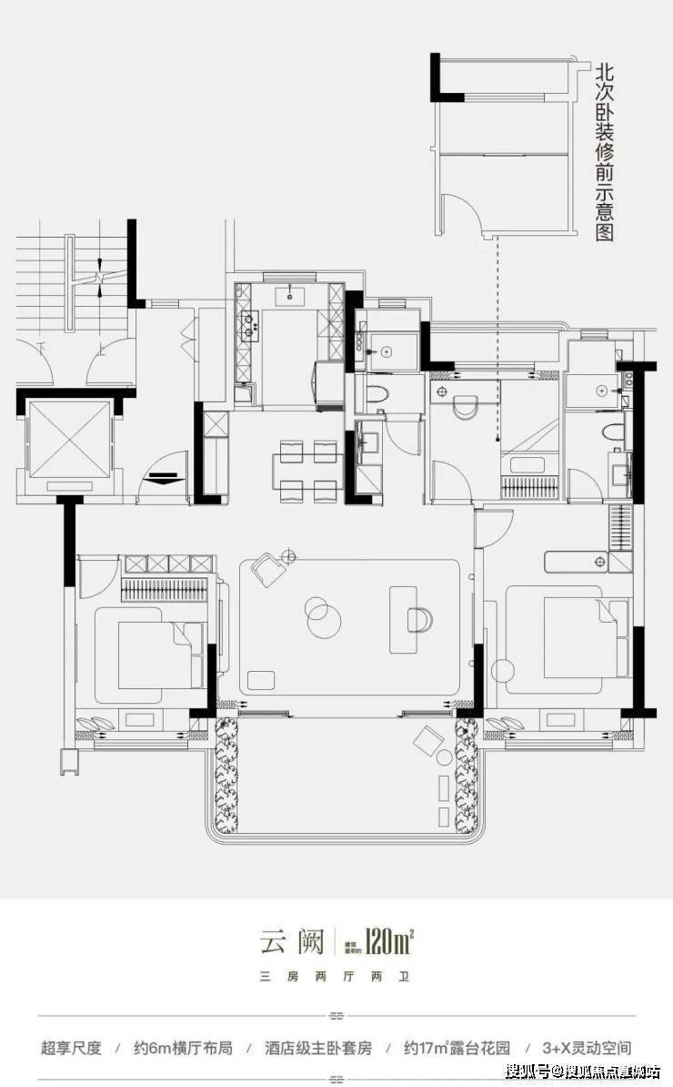 户型面积格局核心特色适合人群约100㎡3室2厅2卫约15㎡露台花园,三开间朝南,竖厅设计双阳台配置年轻家庭/首次改善约120㎡3室2厅2卫6米大横厅,约17㎡露台,动静分区明确品质改善家庭约148㎡4室2厅3卫LDKB一体化空间,约23㎡空中庭院,行政级主卧套房多代同堂家庭