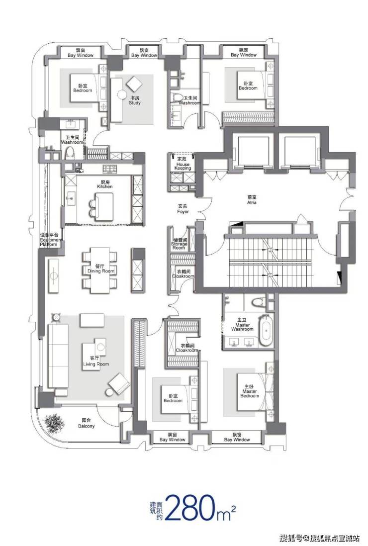 ✔建面约280㎡,内环难有敌手的全功能性户型。