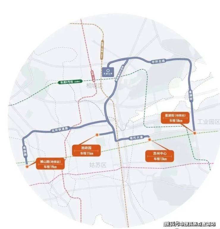 除了交通便利外,项目周边商业、医疗和教育资源都十分丰富,天虹、龙湖天街、苏州大学第二实验小学、中学以及相城人民医院等配套设施距离项目均约2公里左右。