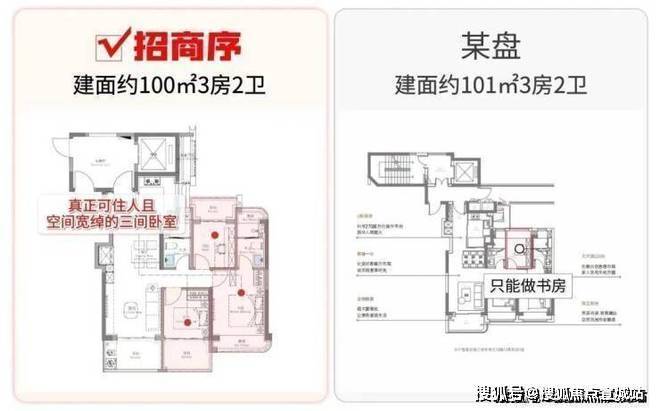 这是百平米3房那么多年一直无法解决的通病,但招商序的百平米3房却截然不同, TA凭借着3阳台的设计,给到客户一个真正的三房户型: