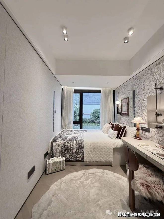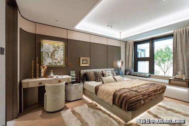 豪华的套房设计,北侧卫浴飘窗+南向床边双飘窗的设计,更是把这个空间的视野和收纳空间延展开来,尺度感真的很惊人。