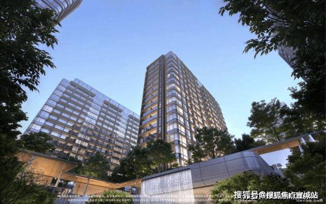 社区景观方面,项目运用室内手法室外化设计构想,将垂直景墙、悬浮观景台与叠水景观立体穿插,形成情随境转的沉浸式体验,自然元素渗透进室内,并与室内空间动态互动。