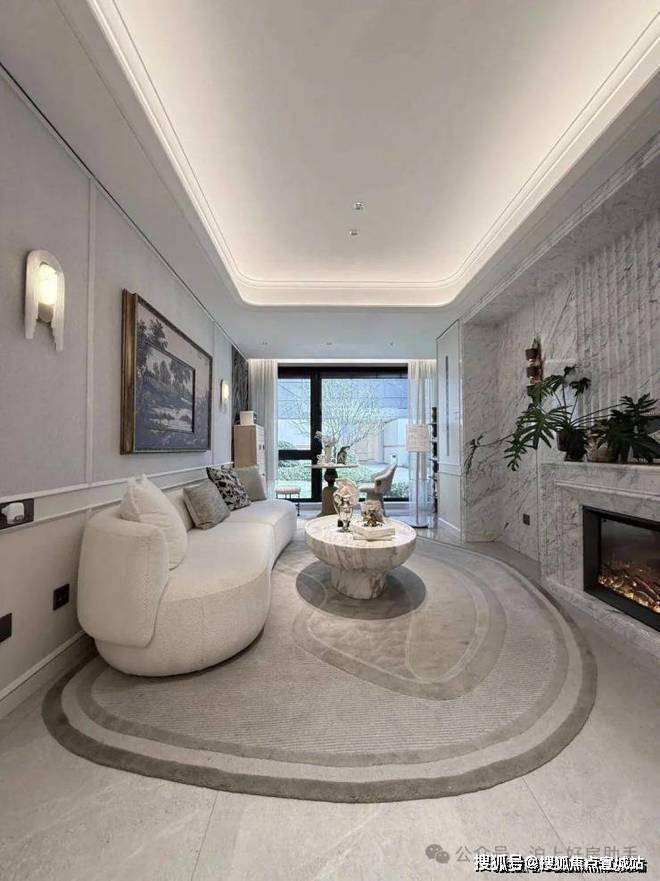 双轴线的设计,充分拓宽了视野面与观赏点位,环形回廊、精神游廊与下沉庭院通过立体景观平台相融,又创造出隔岸听泉的诗意场景。在每个重要生活触点,业主都能拥享独特景观和欣赏视野。