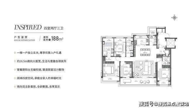 面积:主力户型面积为 119-188㎡,有三室两厅两卫和四室两厅三卫等户型。