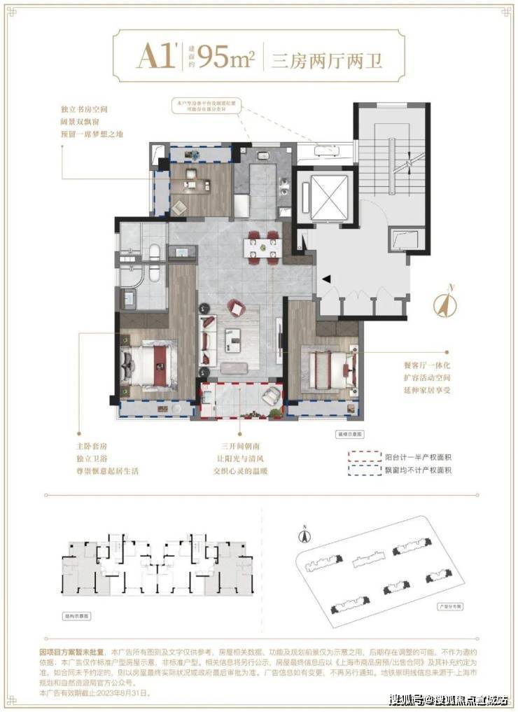 建面约95/116㎡精装3房