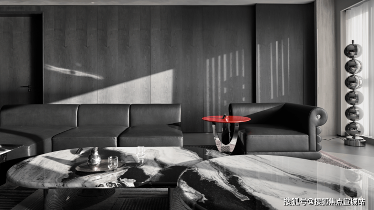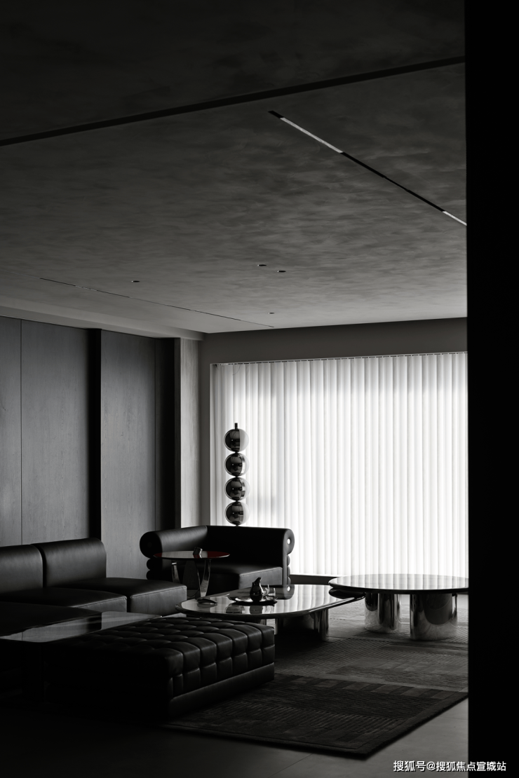 水墨风格暗沉色调的整体空间开场厚重,加一点丹色冉冉,随即点燃先抑后扬的场所氛围。
