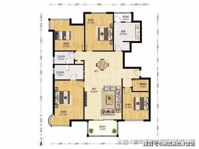 建面:249.19㎡:四房两厅二卫