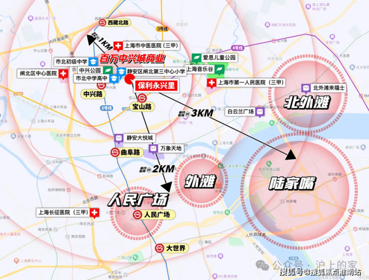 区域配置上,直线距离3公里内涵盖南京西路、人民广场、外滩、外白渡桥等顶级商圈与地标,尽享城市繁华。周边交通便捷,距8号线中兴路站约450米,3/4号线宝山路站约400米,三轨环绕,通勤极为便利。1公里内汇聚华润苏河湾中心、中粮大悦中心、万象天地等高端商业,同时坐拥约17.5万㎡城市公园绿地(规划中)、苏河湾公园体系、中兴公园等生态资源,居住环境舒适宜居。医疗资源丰富,3公里内有上海市中医医院、上海长征医院、上海市第一人民医院、上海第十人民医院等多家三甲医院,全方位满足生活需求。