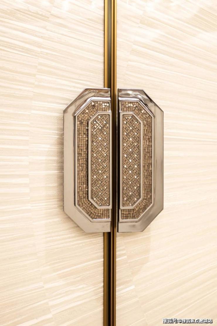 ART DECO风格的黑白拼花大理石地面与大面积镜面墙设计,延展了入户空间的视觉深度。如璀璨星环水晶环形吊灯,增添了归家的仪式感。奢华的玉石背景墙与法式经典家具相映生辉,在静谧与华美之间,彰显翡梵空间的非凡气度。餐厅与西厨之间,八扇手工定制的电动旋转立门,宛如天工造物般的巧思令人惊艳。每一扇门均镶嵌意大利SICIS内含铂金的奢华马赛克,天然贝壳面板在灯光下折射出璀璨光芒。门扇的开合间,实现了空间的灵动转换,私密与开放的完美平衡,为社交与生活增添无限乐趣。每一处细节都经过大师级的匠心打磨,呈现出一场视觉与感官的极致盛宴