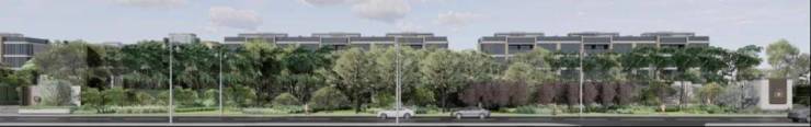 「萃屿原墅」项目借势市政绿地改造,创新性地提出“自定义红线”理念,辐射打造约40米进深浓荫林带,将城市绿意引入社区深处,拓展无边界体验。