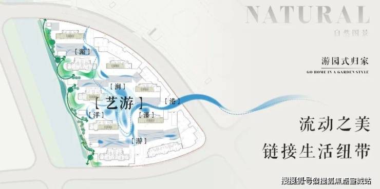 整个社区被水系环绕,繁星式楼栋布局,充满仪式感的景观与浓绿自然的植被,无论是精心设计的景观小品,还是那郁郁葱葱的树木花草,都让你在繁忙的生活中找到一份心灵的慰藉与安宁。