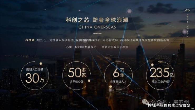 苏州处于产业转型期,从制造业往高端制造、科技创新智慧产业、金融方向转型升级,而科技城就是苏州科技创新的发展级核,金融小镇是科技城科技创新的桥头堡。我们项目就是位于科技城南,金融小镇最核心的生态居住区域。